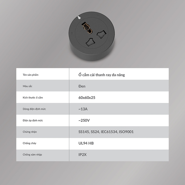 → Ổ cắm có thể dễ dàng trượt và cố định lại trên thanh ray – gọn gàng, thẩm mỹ, tiện lợi.