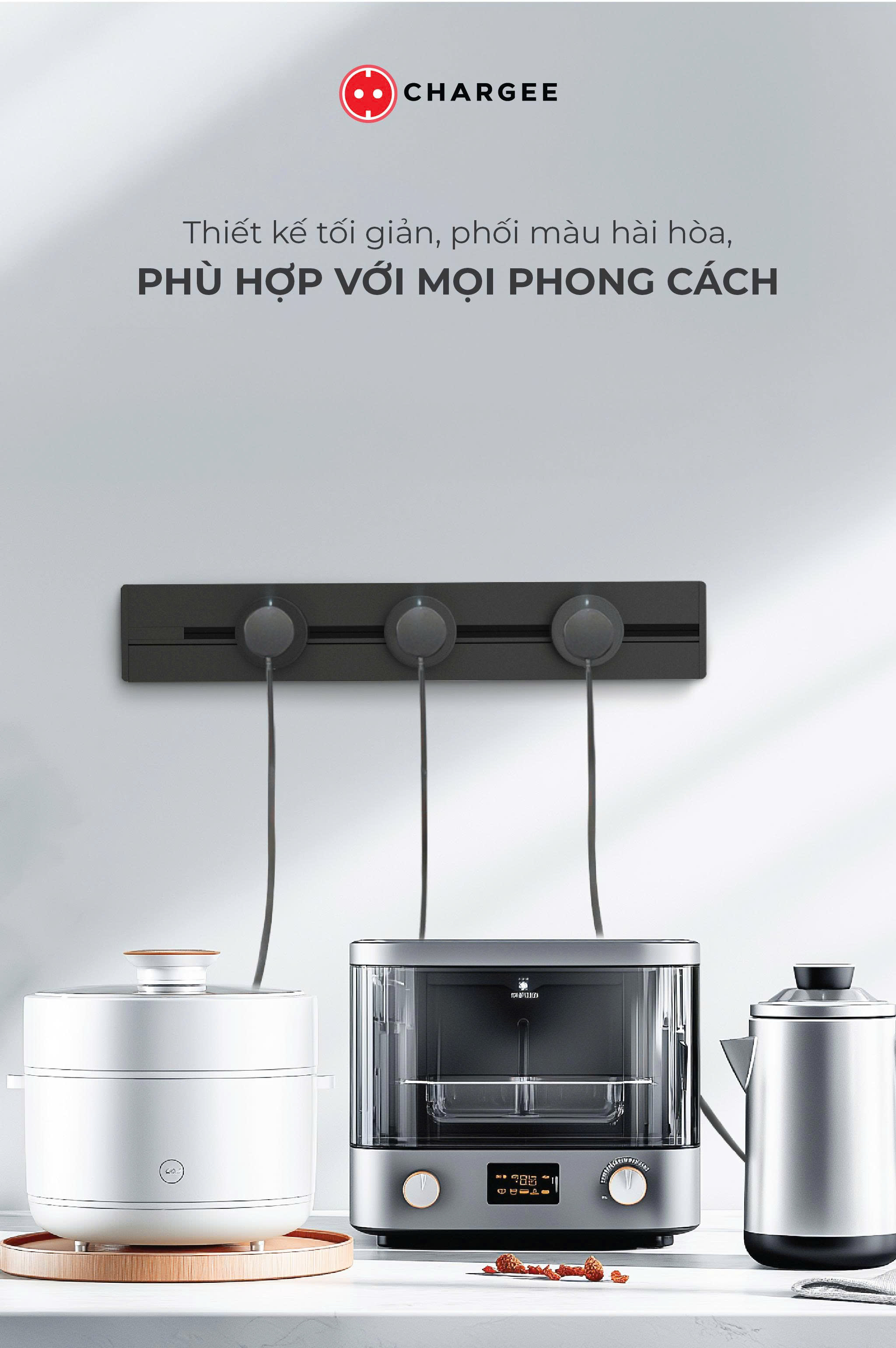 Ổ cắm điện thanh ray phù hợp với nhiều không gian như nhà bếp, phòng khách và phòng làm việc