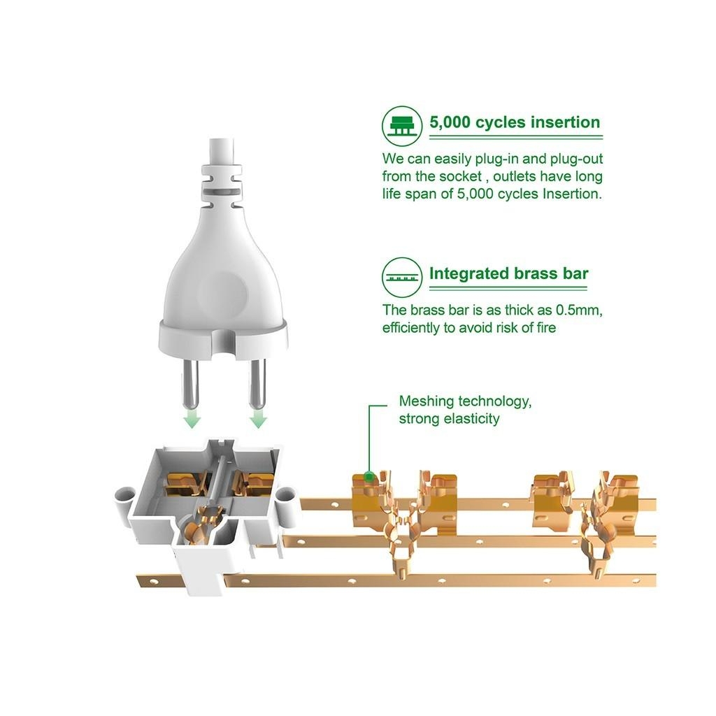 Chịu tải cao gấp 4 lần: Công suất tối đa 2500W giúp ổ cắm chịu tải tốt, chống quá tải điện và ngăn ngừa tình trạng cháy nổ.