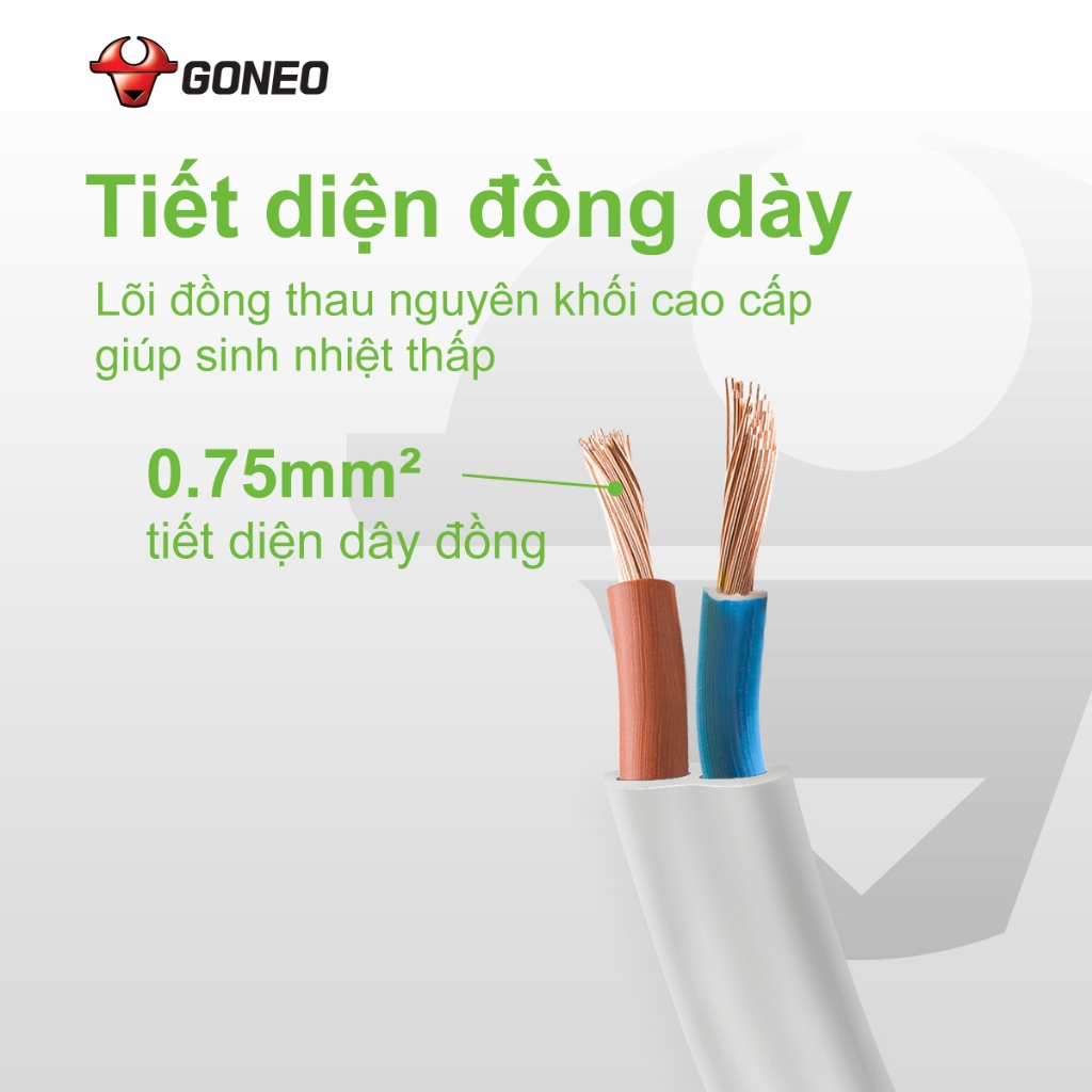 - Công suất lớn: Với công suất lên đến 2500W, Ổ Chia Điện GONEO Z030R có thể đáp ứng nhu cầu sử dụng của nhiều thiết bị điện khác nhau, từ điện thoại, máy tính bảng đến laptop, đèn bàn,...